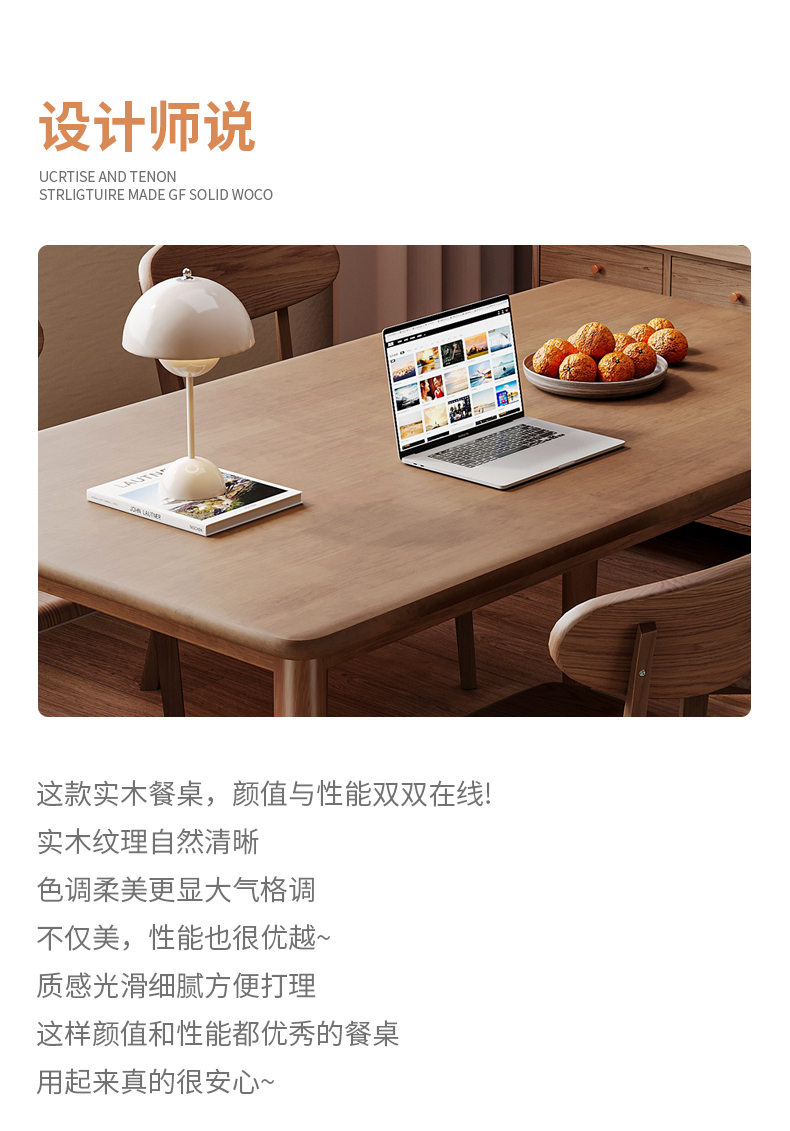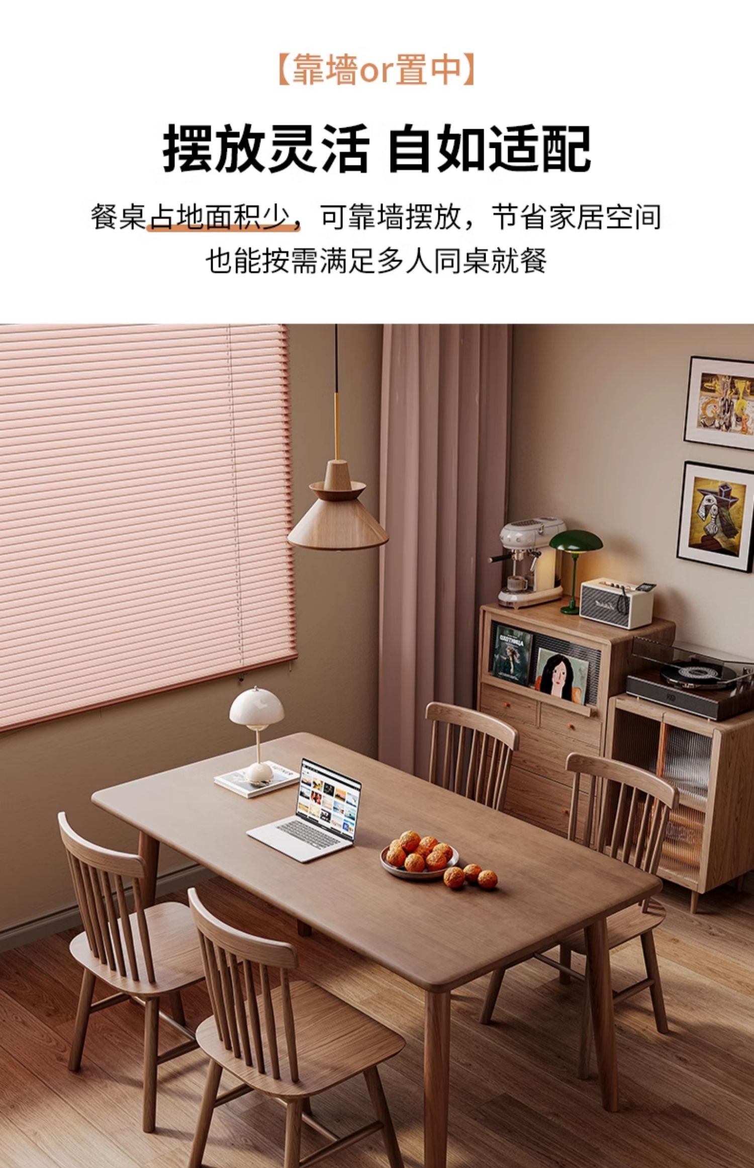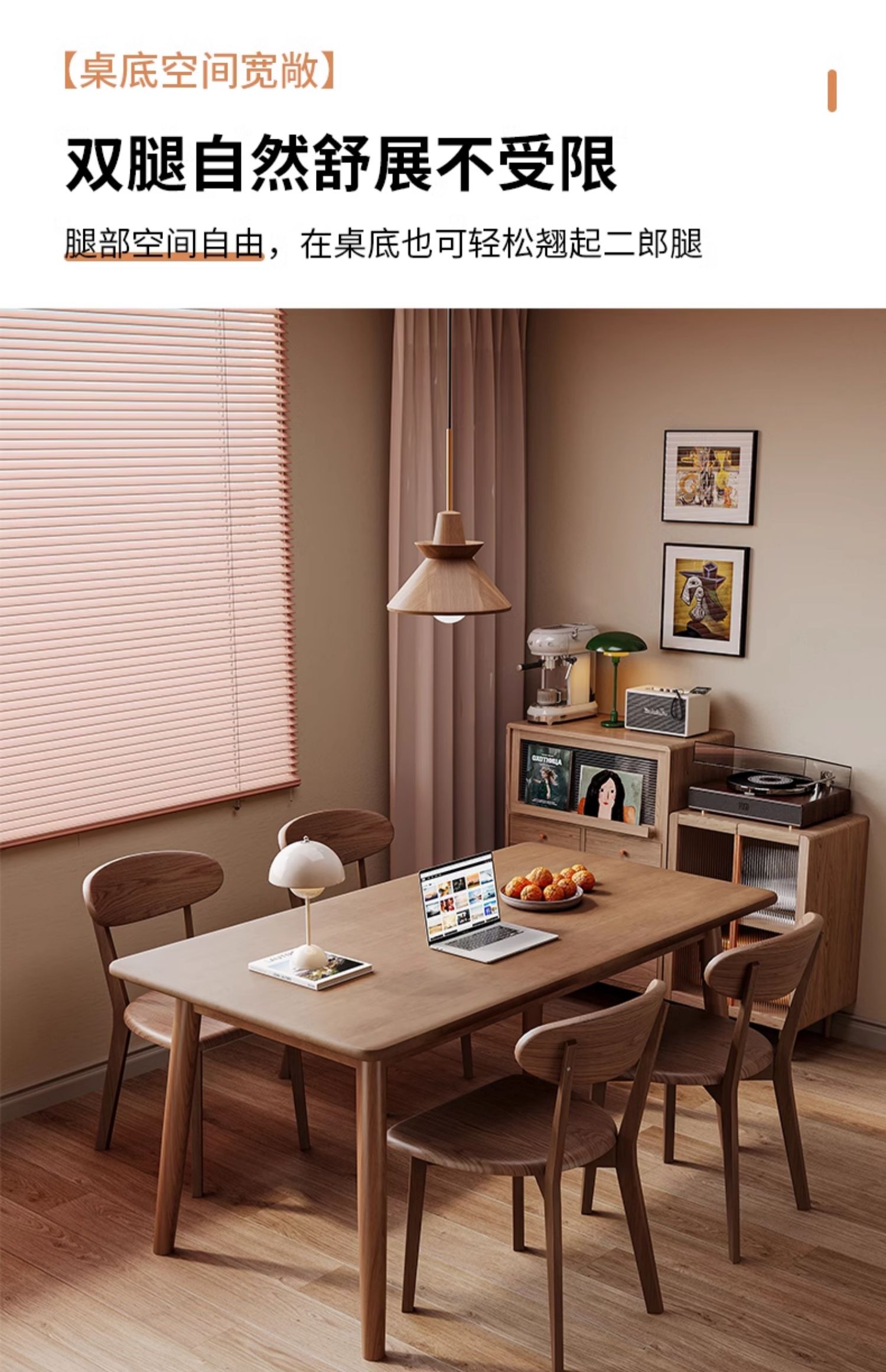 餐桌小户型家用长方形实木茶桌胡桃木吃饭桌子现代简约餐桌椅套装