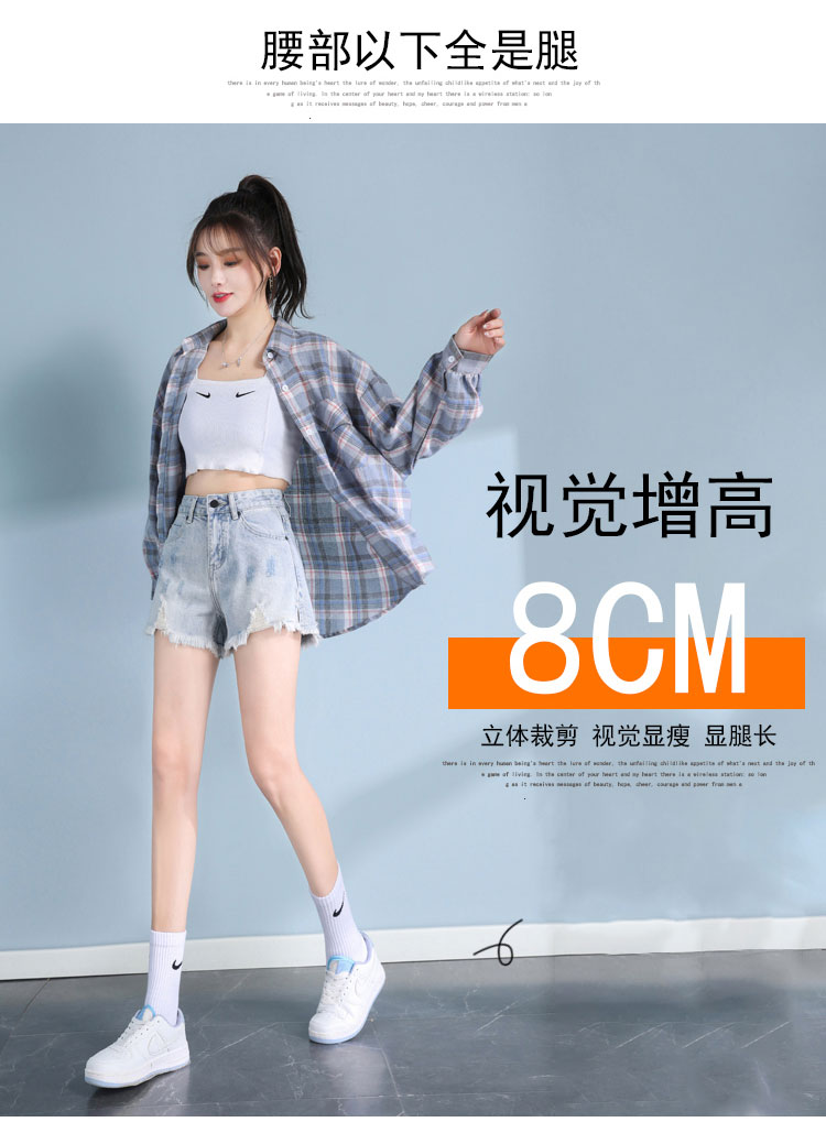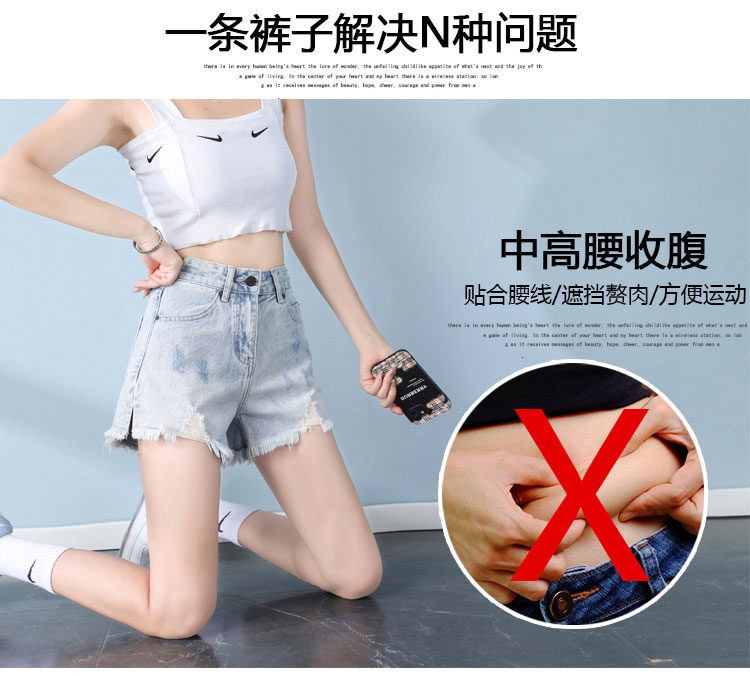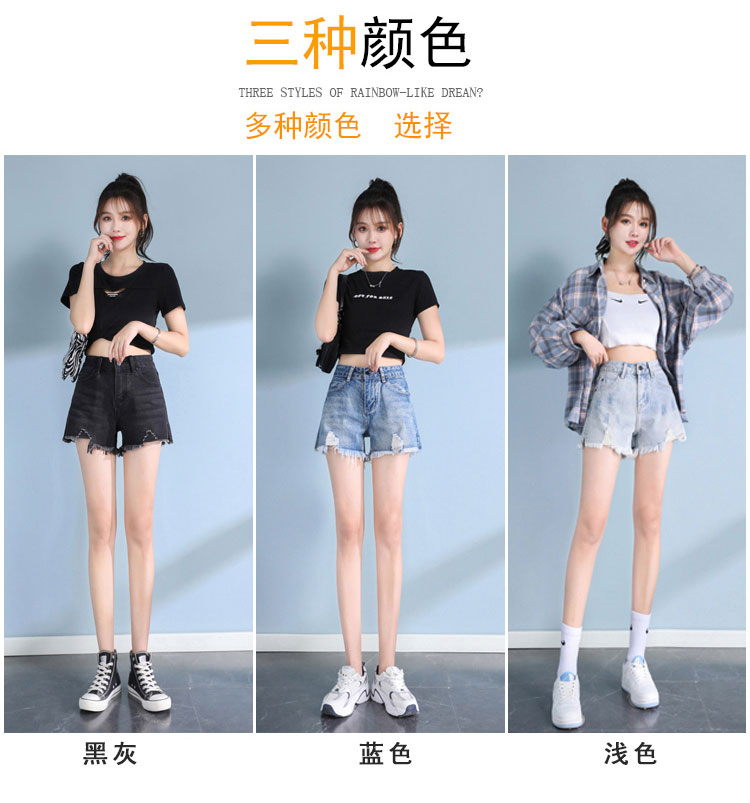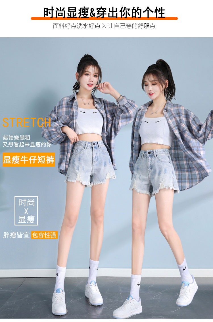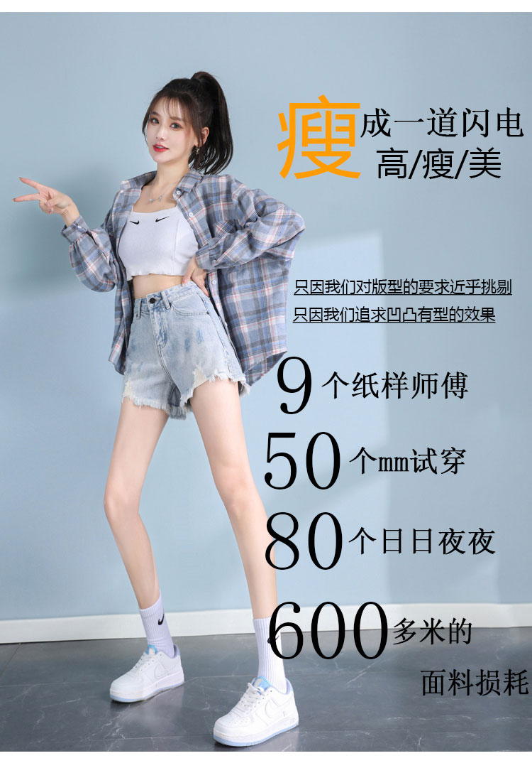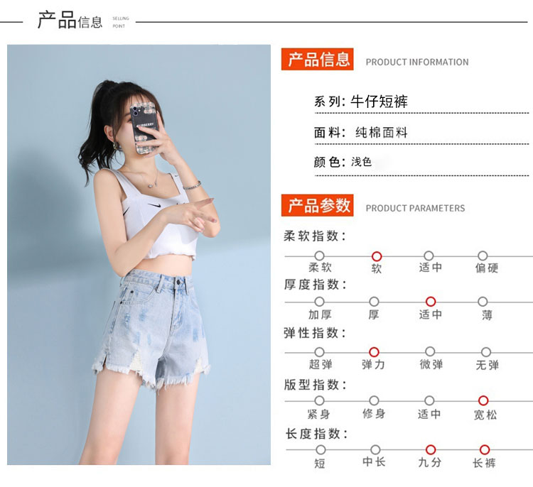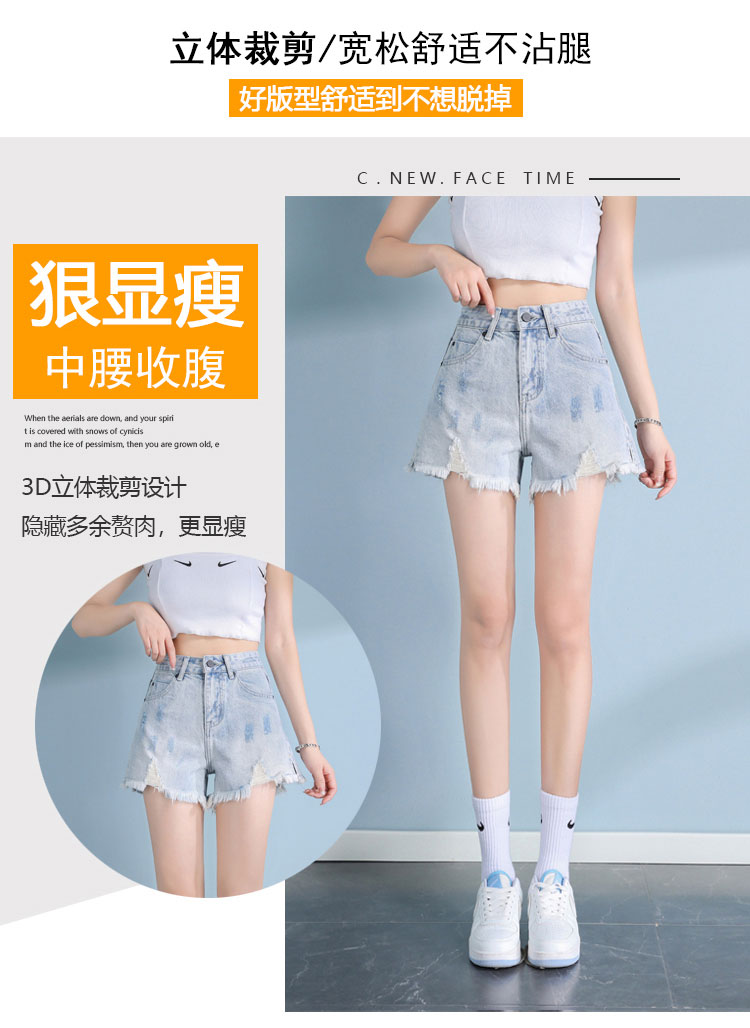 浅蓝撞色高腰直筒破洞牛仔裤女宽松阔腿2025春装款提臀设计感拖地