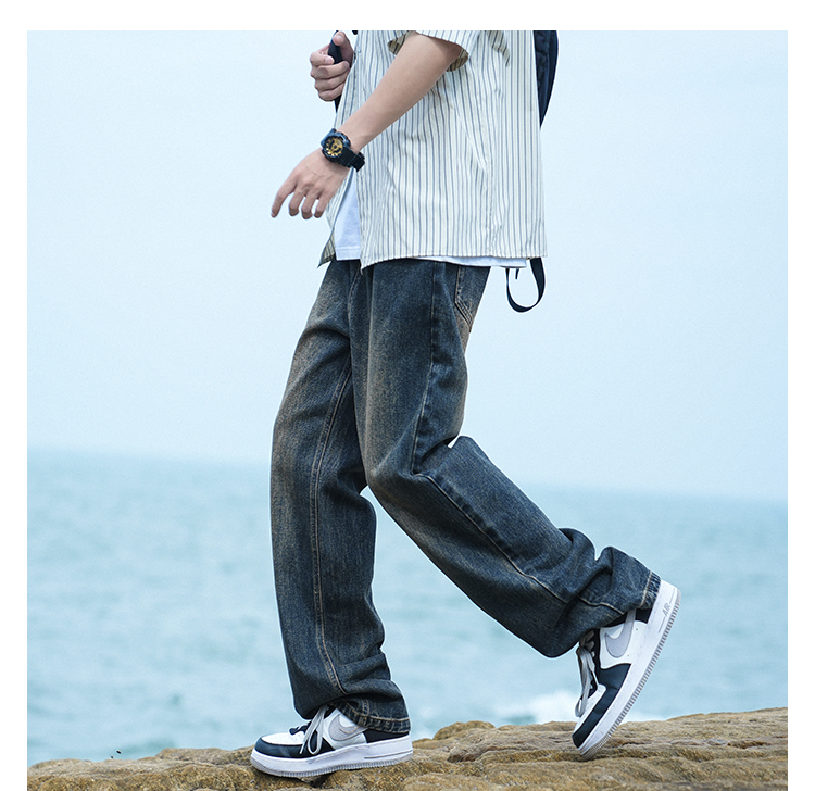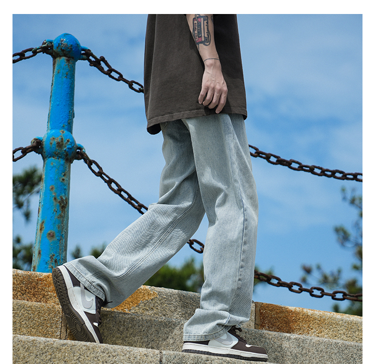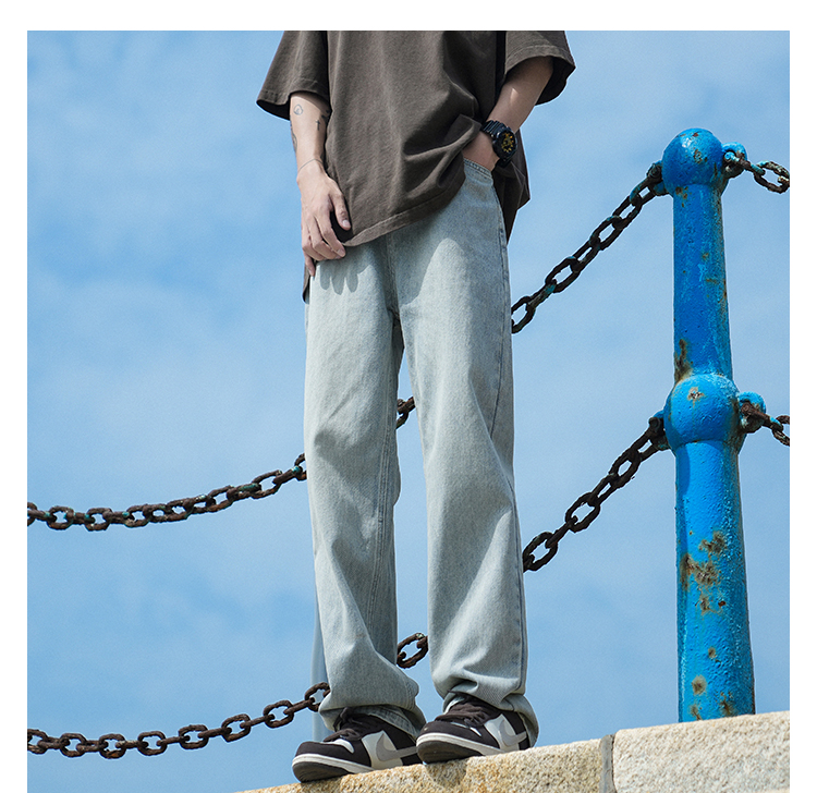 wassup tenet春季水洗牛仔裤男新款潮牌宽松百搭直筒情侣休闲长裤