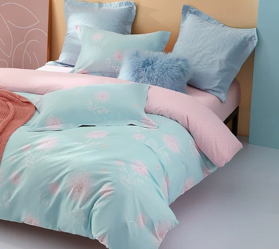 花时间生活100支全棉四件套双股贡缎刺绣长绒棉撞色拼接印花床品